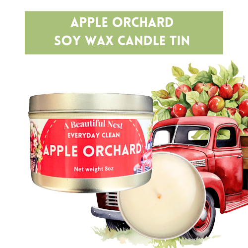 Listing: One metal tin with lid 8 oz natural soy wax candle.