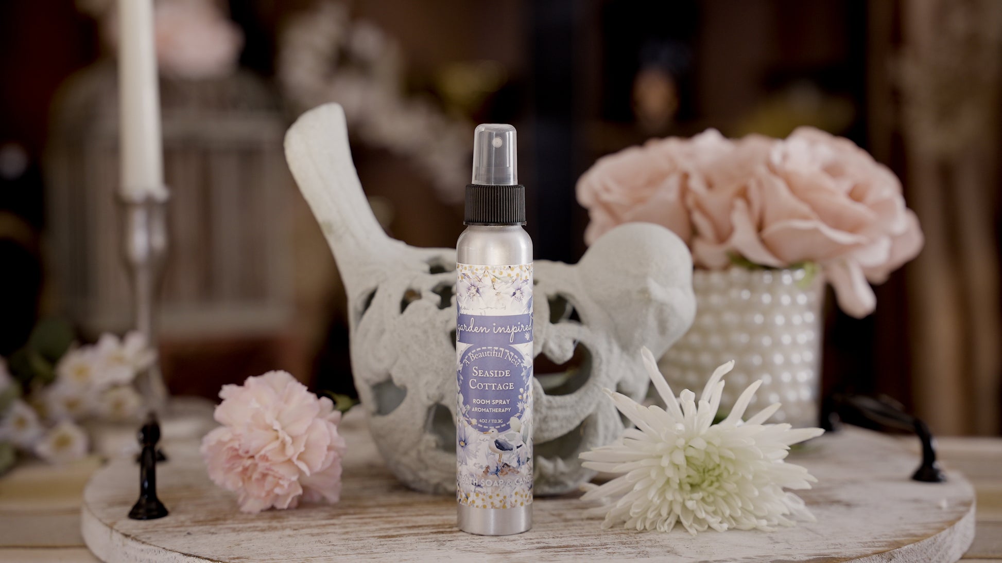 Made with plant-based non-toxic ingredients, this room spray is a water-based mister and is not an aerosol.